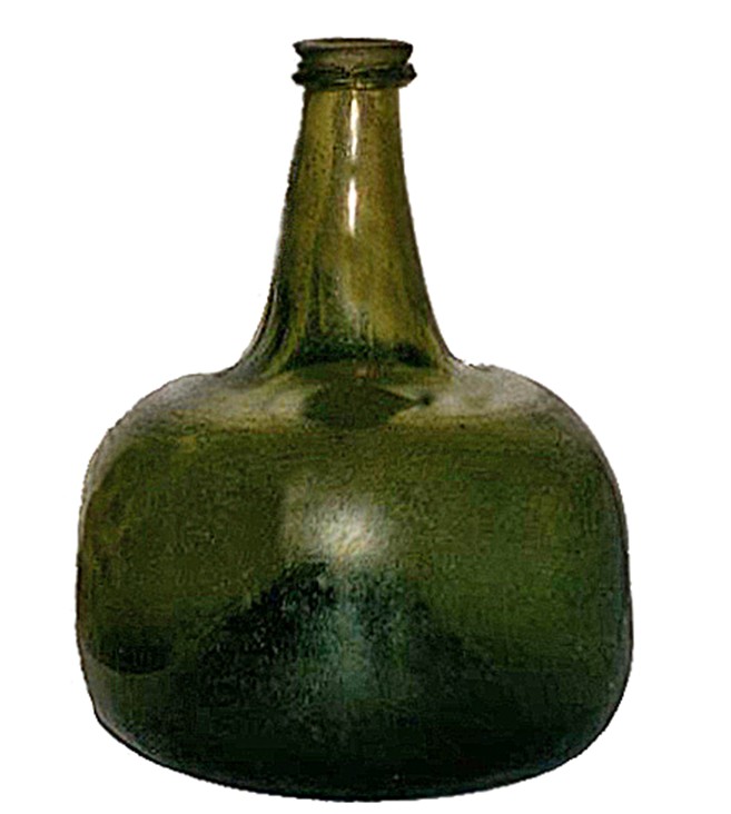 Bouteille en verre environ 1740. Domaine public : Frank Papenbroock Transféré de de.wikipedia allemand à Commons.