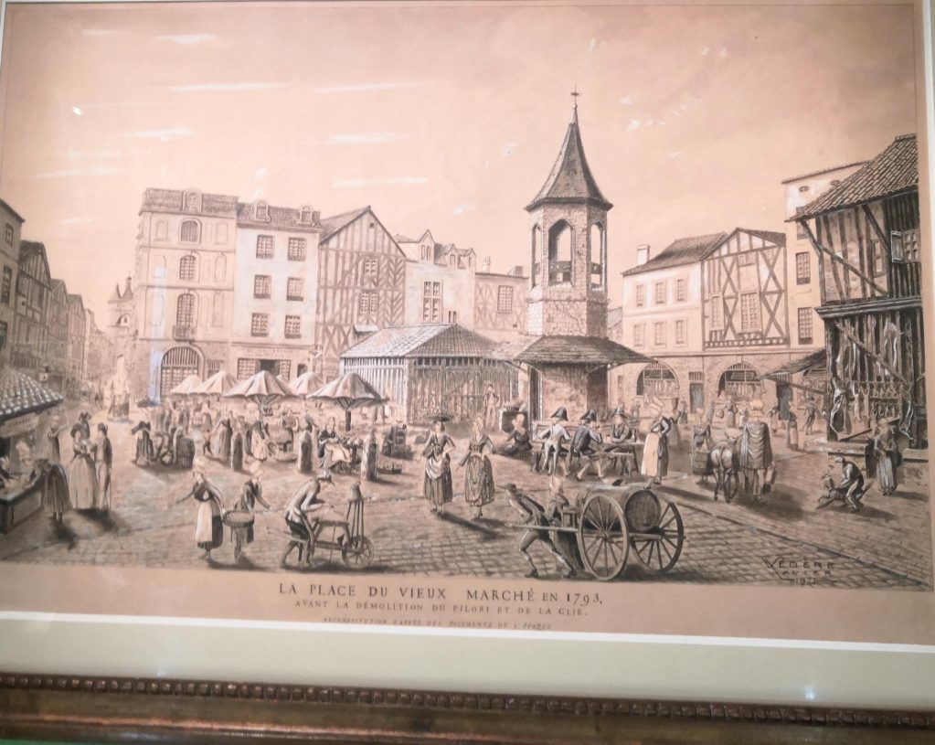 L’exposition : Aux murs et dans les vitrines, cartes anciennes, documents administratifs, dessins d’architecte, aquarelles, gravures offrent une riche vision de la répartition et du fonctionnement des différents marchés de l’agglomération du XVIIe siècle à nos jours. ainsi que des courriers reçus par la mairie concernant les doléances des marchands envers les clients, des clients envers les marchands… ainsi que des marchands entre eux.