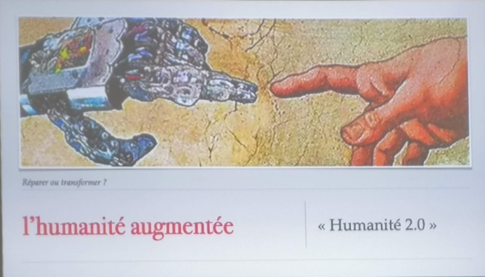 Madame Fleury conclut sa conférence en évoquant le mouvement du Transhumanisme. Cette idéologie prône l’usage des sciences et techniques afin d’améliorer radicalement la condition humaine par l’augmentation des capacités physiques et mentales du corps, jusqu’à la suppression du vieillissement et de la mort. Idée séduisante pour certains mais dangereuse pour d’autres. Il existera toujours des apprentis sorciers et, ajoute-t-elle, n’oublions pas la phrase de Rabelais « Science sans conscience n’est que ruine de l’âme »…