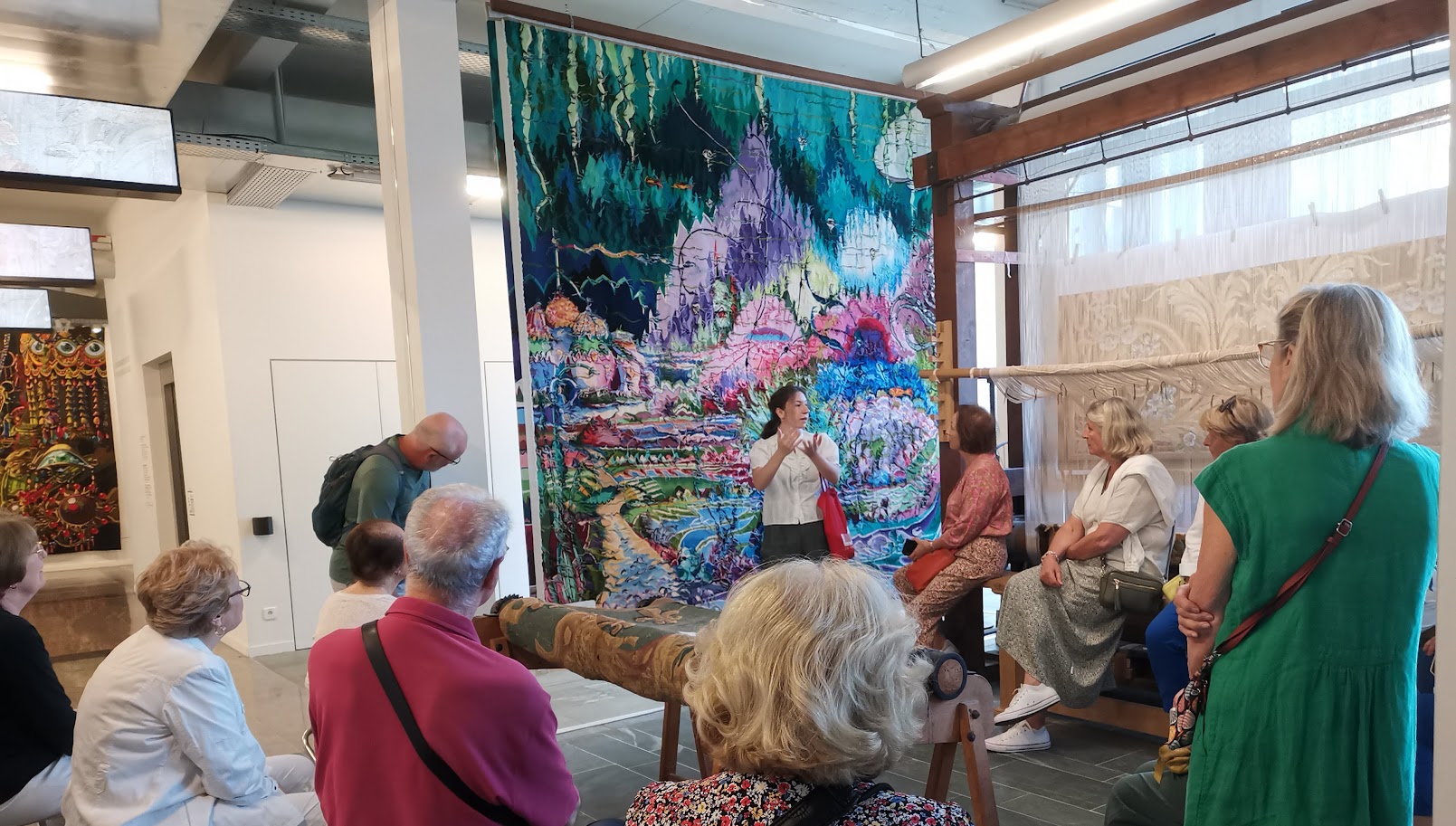 Après la découverte des cartons, nous partons vers la maison des lissiers où une lissière à l’ouvrage nous explique son travail. Nous sommes toutes ouïes devant ce savoir-faire fascinant qui allie patience et passion.