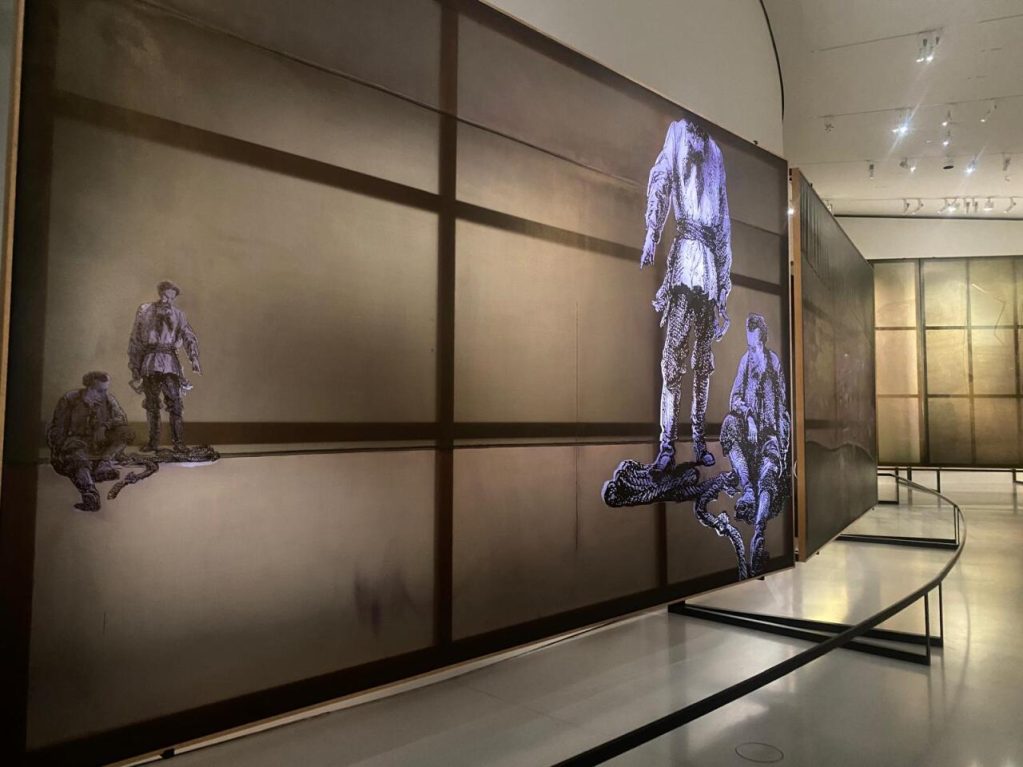 A travers une centaine d’ouvres de la collection Pinault, l’exposition explore l’héritage du chiaroscuro (fort contraste entre parties claires et sombres), de la peinture classique à la création contemporaine.