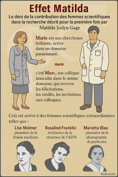 Wikimedia Commons résumé graphique de l’effet Matilda concernant le refus de reconnaître les contributions des femmes en science IlluScientia – Own work